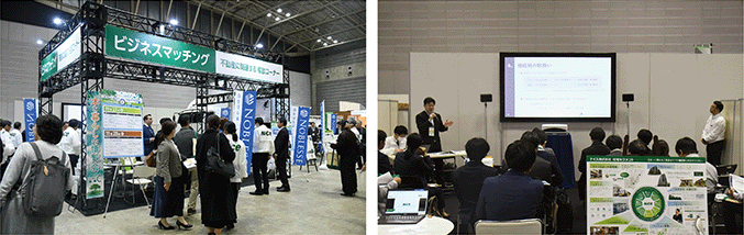 「ビジネスマッチングエリア」では、住宅事業を展開するナイスグループのネットワークを通じて、ビルダー様、デベロッパー様へ事業用地に関する情報提供が行われたほか、不動産会社様やゼネコン様などが多く来場し、販売店様や工務店様との不動産活用に関する情報交換の場となりました。加えて同ブース内では、不動産の資産価値向上に向けた取り組みなどに関するセミナーが行われました。不動産DXの活用事例や高経年マンションの将来設計の進め方のほか、ナイスグループの賃貸物件における木質化リノベーションの収益効果などについて説明がなされ、多くの聴講者で賑わいを見せました。